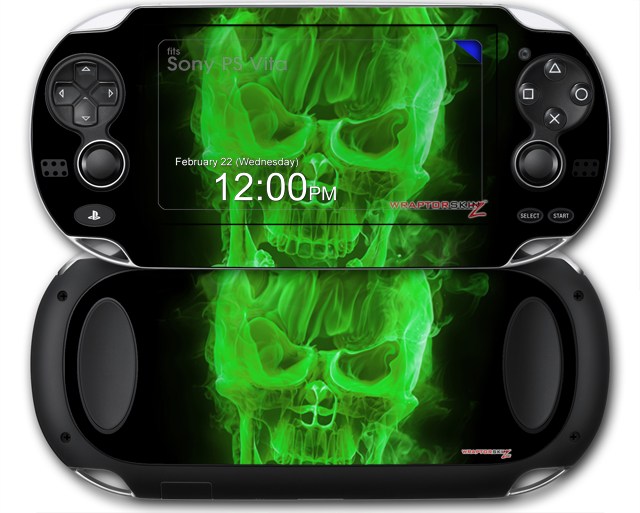 Flaming Fire Skull Green - Decal Style Skin fits Sony PS Vita