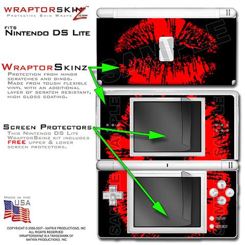 Nintendo DS Lite Skin Big Kiss Lips Red on Black WraptorSkinz Kit by TuneTattooz