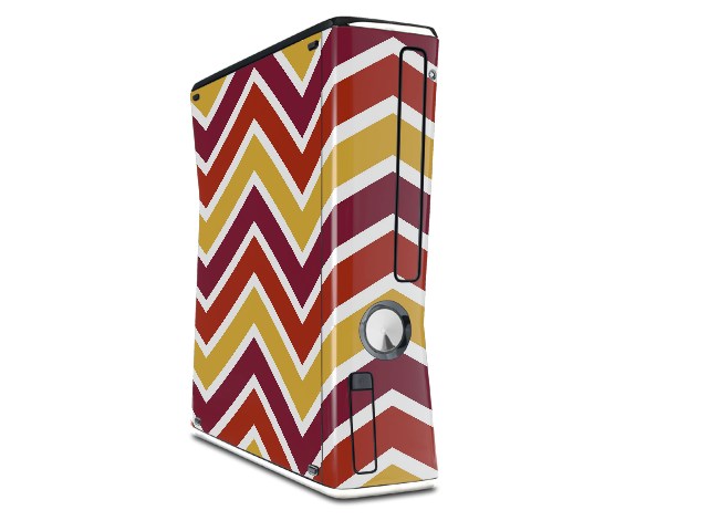 Zig Zag Yellow Burgundy Orange Decal Style Skin for XBOX 360 Slim Vertical