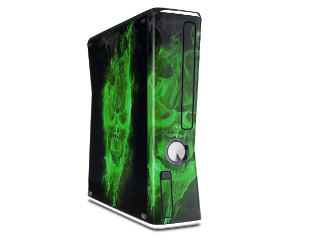 Flaming Fire Skull Green Decal Style Skin for XBOX 360 Slim Vertical