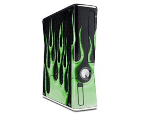 Metal Flames Green Decal Style Skin for XBOX 360 Slim Vertical