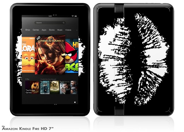 Big Kiss White Lips on Black Decal Style Skin fits 2012 Amazon Kindle Fire HD 7 inch