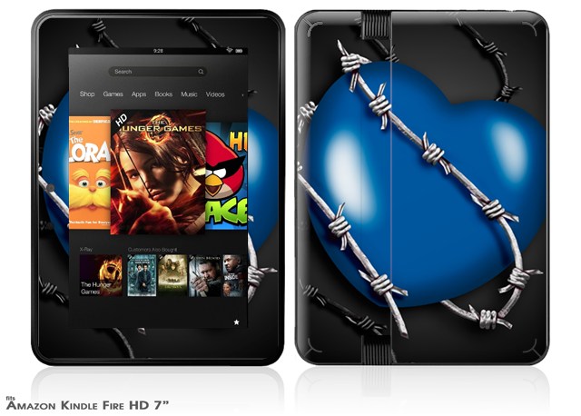 Barbwire Heart Blue Decal Style Skin fits 2012 Amazon Kindle Fire HD 7 inch