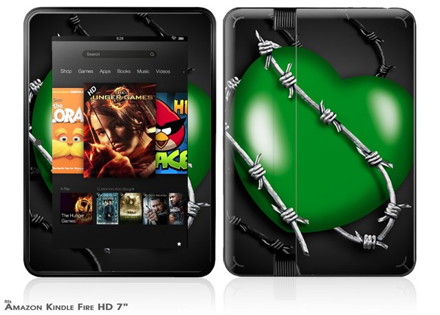 Barbwire Heart Green Decal Style Skin fits 2012 Amazon Kindle Fire HD 7 inch