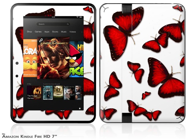 Butterflies Red Decal Style Skin fits 2012 Amazon Kindle Fire HD 7 inch