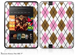 Argyle Pink and Brown Decal Style Skin fits 2012 Amazon Kindle Fire HD 7 inch