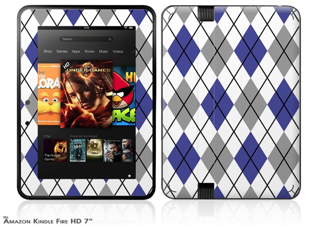 Argyle Blue and Gray Decal Style Skin fits 2012 Amazon Kindle Fire HD 7 inch