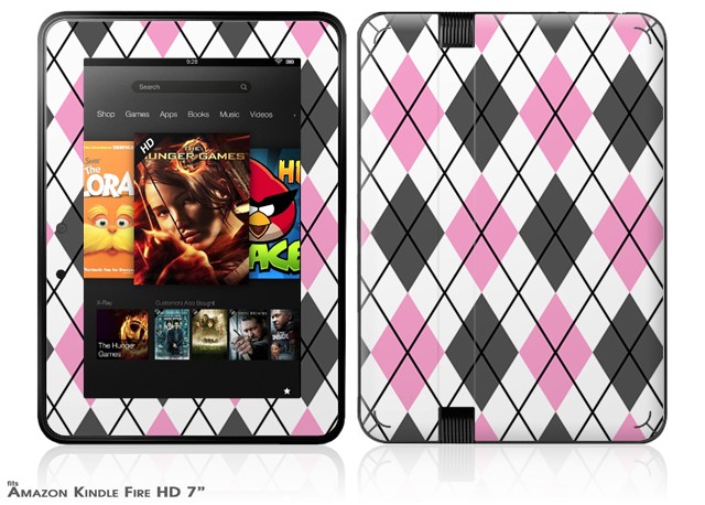 Argyle Pink and Gray Decal Style Skin fits 2012 Amazon Kindle Fire HD 7 inch