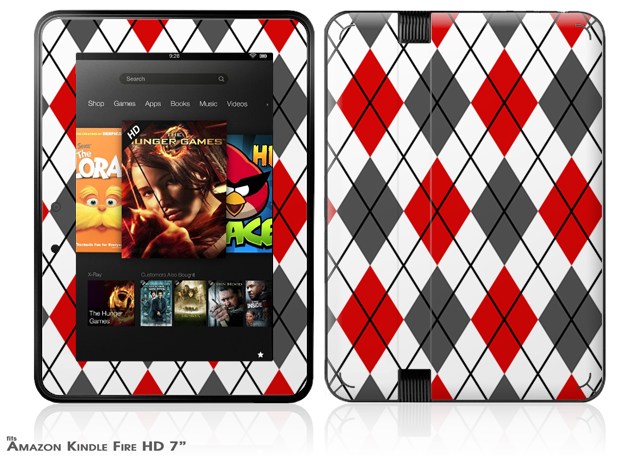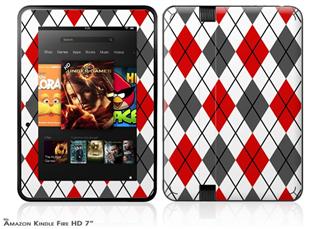 Argyle Red and Gray Decal Style Skin fits 2012 Amazon Kindle Fire HD 7 inch