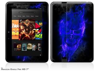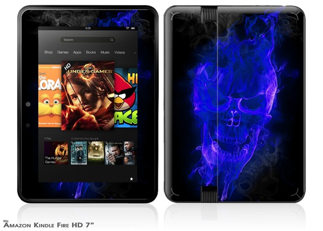 Flaming Fire Skull Blue Decal Style Skin fits 2012 Amazon Kindle Fire HD 7 inch