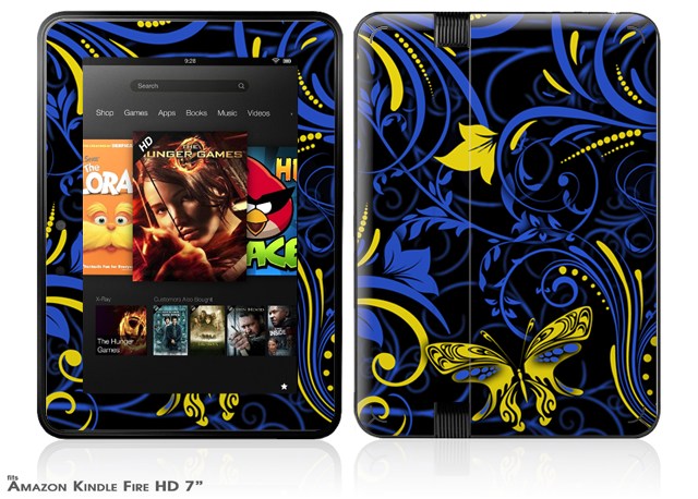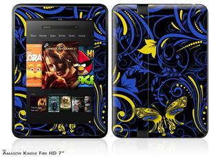 Twisted Garden Blue and Yellow Decal Style Skin fits 2012 Amazon Kindle Fire HD 7 inch