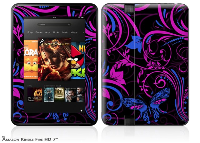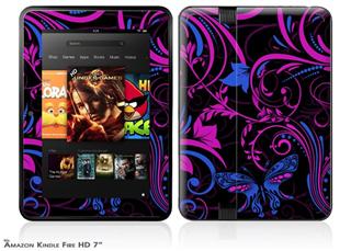 Twisted Garden Hot Pink and Blue Decal Style Skin fits 2012 Amazon Kindle Fire HD 7 inch