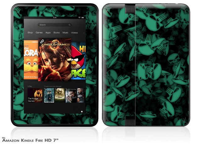 Skulls Confetti Seafoam Green Decal Style Skin fits 2012 Amazon Kindle Fire HD 7 inch