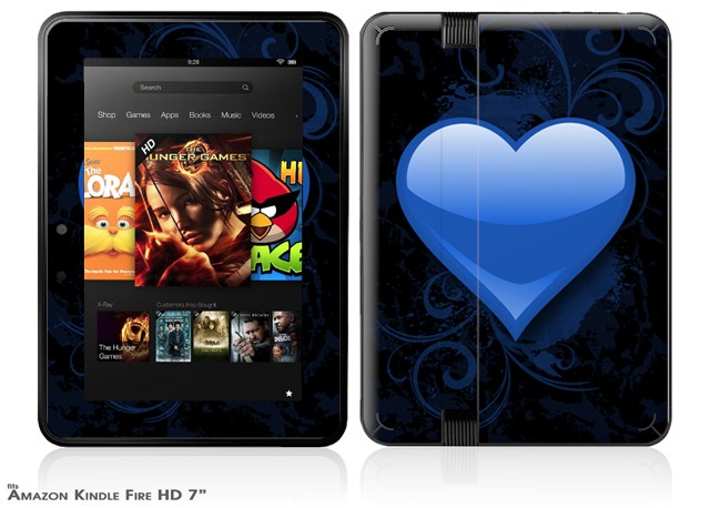 Glass Heart Grunge Blue Decal Style Skin fits 2012 Amazon Kindle Fire HD 7 inch