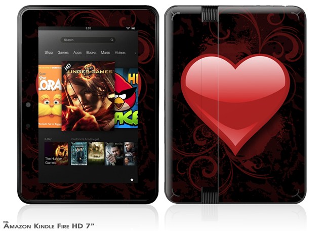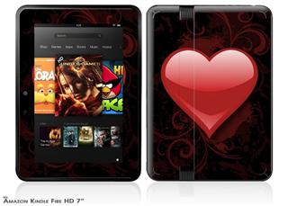 Glass Heart Grunge Red Decal Style Skin fits 2012 Amazon Kindle Fire HD 7 inch