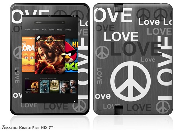 Love and Peace Gray Decal Style Skin fits 2012 Amazon Kindle Fire HD 7 inch