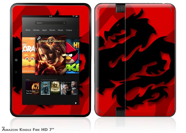 Oriental Dragon Black on Red Decal Style Skin fits 2012 Amazon Kindle Fire HD 7 inch