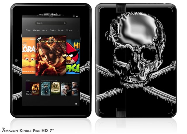 Chrome Skull on Black Decal Style Skin fits 2012 Amazon Kindle Fire HD 7 inch