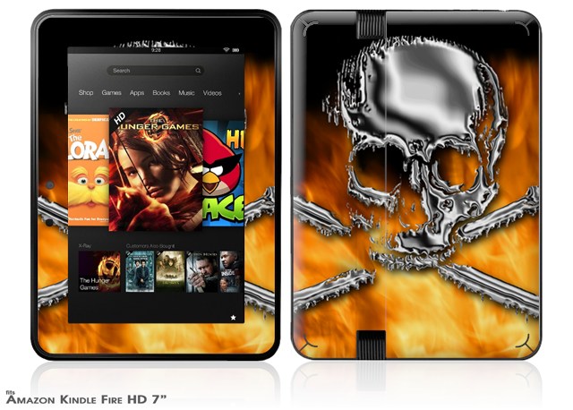 Chrome Skull on Fire Decal Style Skin fits 2012 Amazon Kindle Fire HD 7 inch