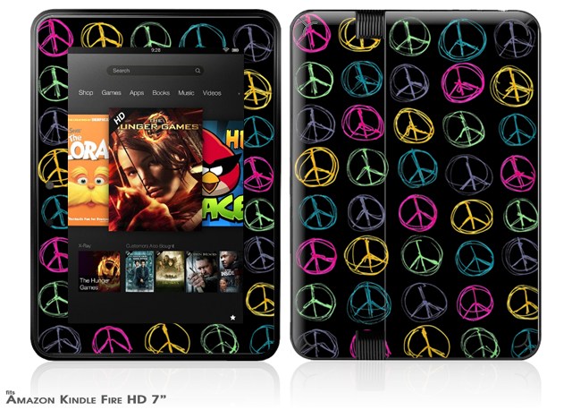 Kearas Peace Signs on Black Decal Style Skin fits 2012 Amazon Kindle Fire HD 7 inch