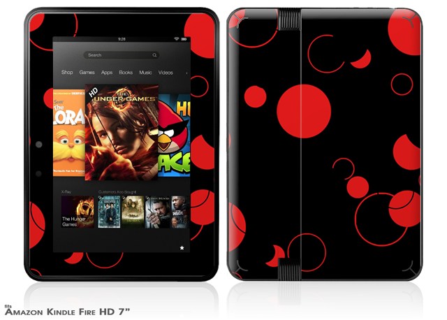 Lots of Dots Red on Black Decal Style Skin fits 2012 Amazon Kindle Fire HD 7 inch