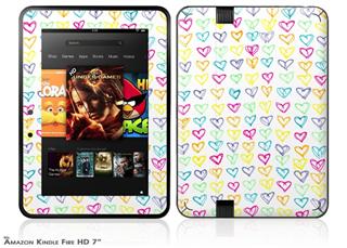 Kearas Hearts White Decal Style Skin fits 2012 Amazon Kindle Fire HD 7 inch