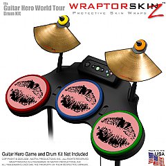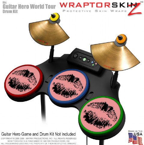 Big Kiss Lips Black on Pink Skin by WraptorSkinz™ fits Guitar Hero 4 World Tour Drum Set for Nintendo Wii, XBOX 360, PS2 & PS3 (DRUMS NOT INCLUDED)