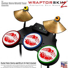 Big Kiss Lips Red on White Skin by WraptorSkinz™ fits Guitar Hero 4 World Tour Drum Set for Nintendo Wii, XBOX 360, PS2 & PS3 (DRUMS NOT INCLUDED)