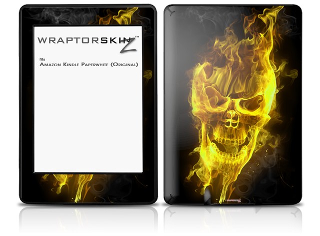 Flaming Fire Skull Yellow - Decal Style Skin fits Amazon Kindle Paperwhite (Original)
