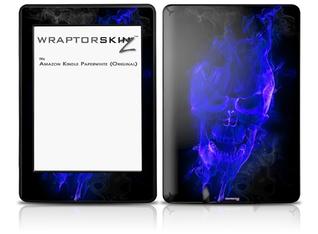 Flaming Fire Skull Blue - Decal Style Skin fits Amazon Kindle Paperwhite (Original)