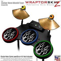 Metal Flames Chrome Skin by WraptorSkinz™ fits Guitar Hero 4 World Tour Drum Set for Nintendo Wii, XBOX 360, PS2 & PS3 (DRUMS NOT INCLUDED)