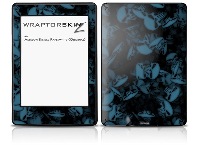 Skulls Confetti Blue - Decal Style Skin fits Amazon Kindle Paperwhite (Original)