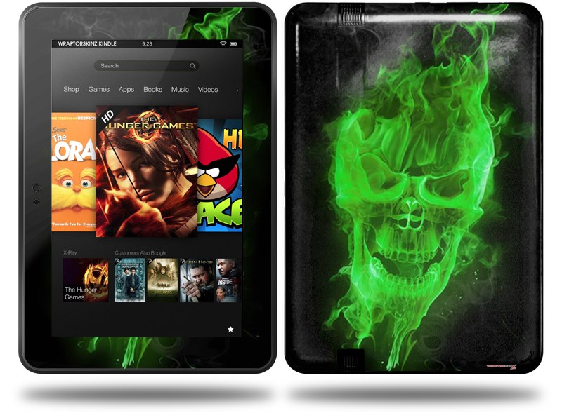 Flaming Fire Skull Green Decal Style Skin fits Amazon Kindle Fire HD 8.9 inch