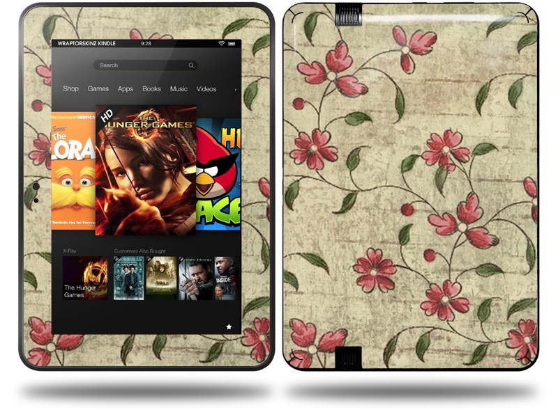 Flowers and Berries Red Decal Style Skin fits Amazon Kindle Fire HD 8.9 inch