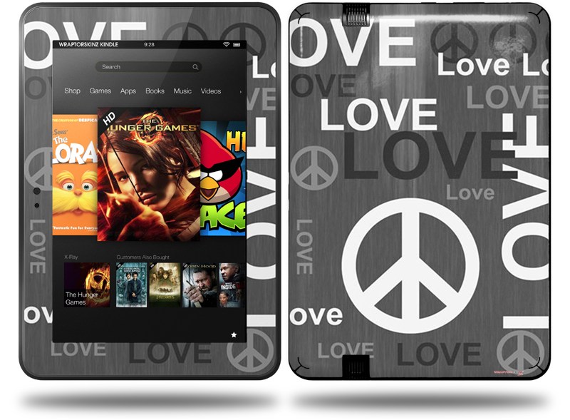 Love and Peace Gray Decal Style Skin fits Amazon Kindle Fire HD 8.9 inch