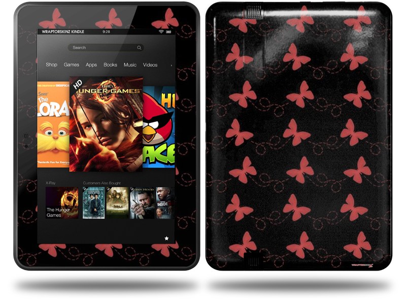 Pastel Butterflies Red on Black Decal Style Skin fits Amazon Kindle Fire HD 8.9 inch