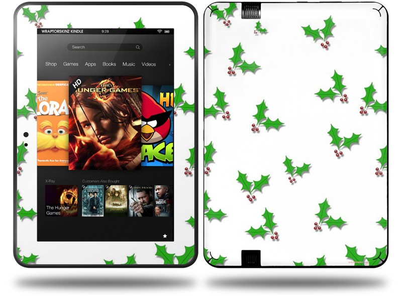 Christmas Holly Leaves on White Decal Style Skin fits Amazon Kindle Fire HD 8.9 inch