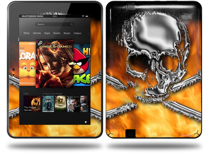 Chrome Skull on Fire Decal Style Skin fits Amazon Kindle Fire HD 8.9 inch