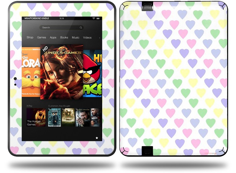 Pastel Hearts on White Decal Style Skin fits Amazon Kindle Fire HD 8.9 inch
