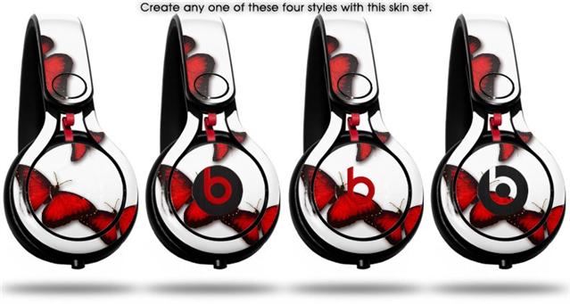 Skin Decal Wrap works with Beats Mixr Headphones Butterflies Red Skin Only (HEADPHONES NOT INCLUDED)