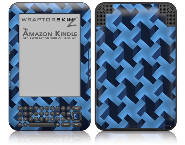 Retro Houndstooth Blue - Decal Style Skin fits Amazon Kindle 3 Keyboard (with 6 inch display)