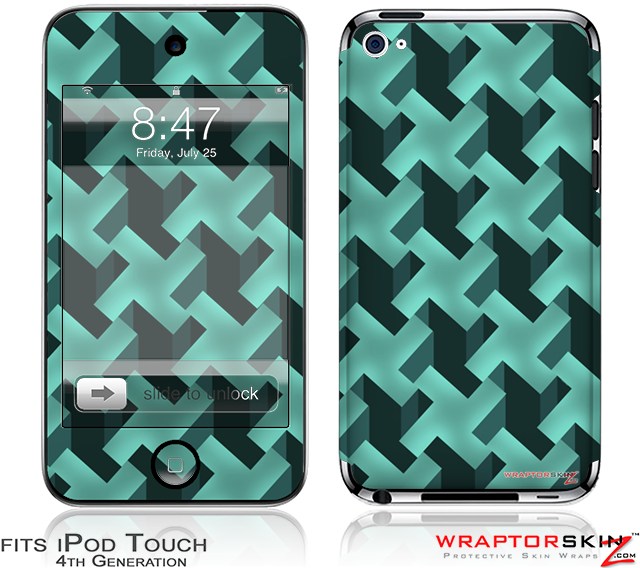 iPod Touch 4G Skin Retro Houndstooth Seafoam Green