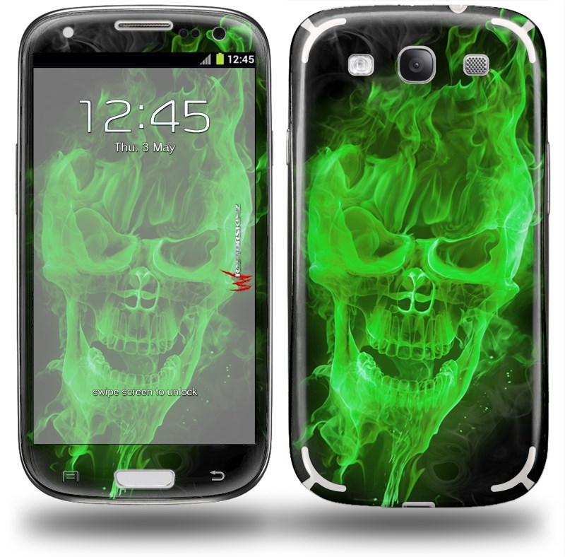 Flaming Fire Skull Green - Decal Style Skin (fits Samsung Galaxy S III S3)