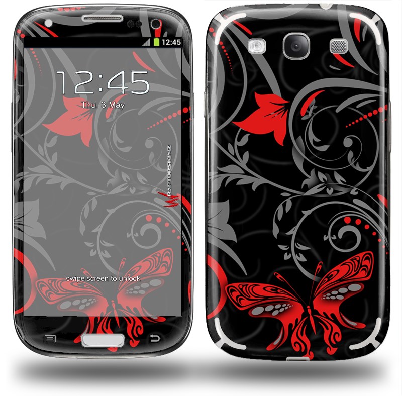 Twisted Garden Gray and Red - Decal Style Skin (fits Samsung Galaxy S III S3)