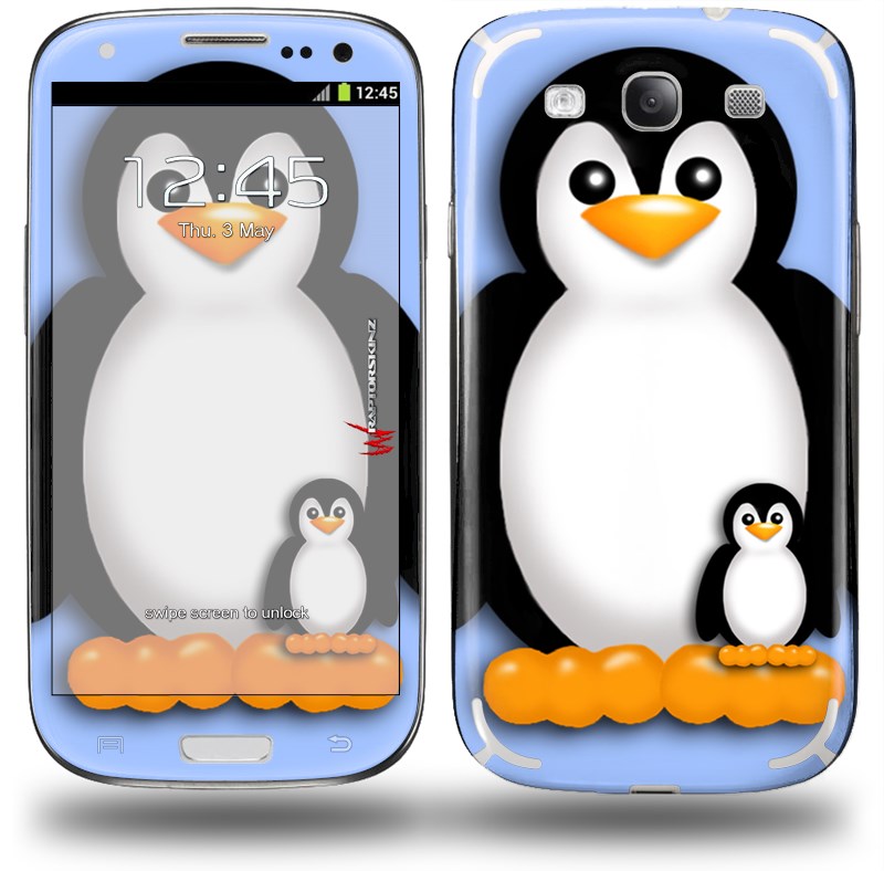 Penguins on Blue - Decal Style Skin (fits Samsung Galaxy S III S3)