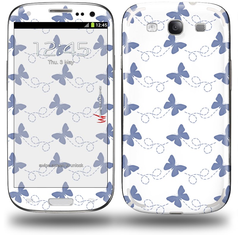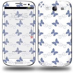 Pastel Butterflies Blue on White - Decal Style Skin (fits Samsung Galaxy S III S3)