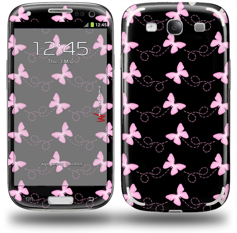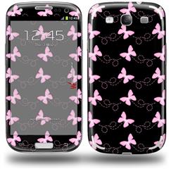 Pastel Butterflies Pink on Black - Decal Style Skin (fits Samsung Galaxy S III S3)