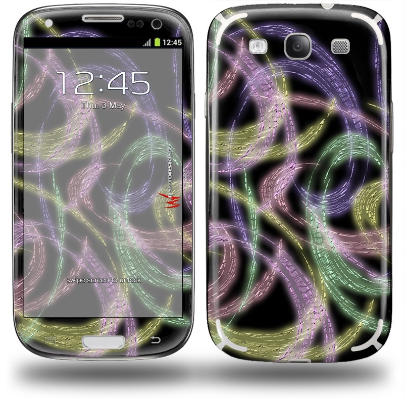 Neon Swoosh on Black - Decal Style Skin (fits Samsung Galaxy S III S3)