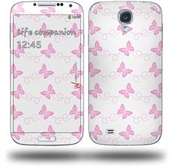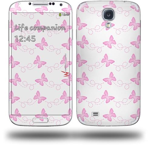 Pastel Butterflies Pink on White - Decal Style Skin (fits Samsung Galaxy S IV S4)