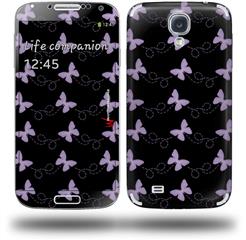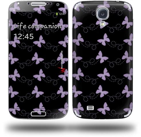 Pastel Butterflies Purple on Black - Decal Style Skin (fits Samsung Galaxy S IV S4)